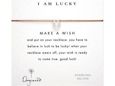 --Continue Reading--The newest artist to join the Artfully Elegant collection is Dogeared Jewelry. Created by Marcia Maizel-Clarke in 1991 in California, each charm is handmade and placed on a variety of silk threads and chains. With their wish necklaces and bracelets, you put it on and make a wish. When it wears off, your wish should come true. The wish necklaces come on a variety of colored silk thread. The wish bracelets are on irish linen, a waxed cotton cord. You can wear them, as Dogeared suggests, or you could take them on and off is you wish. I ordered a huge range, so we have lots of great options. I love the Wish Big necklace, the I Am Lucky Horseshoe that’s pictured, and the Key to Success. All of their necklaces have great messages that go along with them, so they’re great as gifts or a pick-me-up for yourself. Look for the bracelets on the site soon! Their more “permanent” necklaces are the reminder necklaces. They’re the same charms as the wish series, just on solid sterling silver or gold-dipped chains. They’re a great for layering and mixing with other designers, like Laurel Denise. I think my favorite is Love Potion, but the north star in the Mom necklace is super cute too. Plus we have that one in silver and gold. The best thing about these is that the wish necklaces and bracelets are only $25 and most of the others are under $50. They’re a steal for handmade jewelry!
