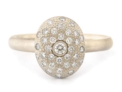 --Continue Reading--During the holidays, we had an absolute run on Anne Sportun jewelry. From necklaces and earrings to diamond rings, we ended the season with a very pared down case from Anne. Rest assured, we are restocking as we speak. Our best sellers recently were the pave rings. We sold both the yellow and white gold versions of the Pave Disc ring, plus a yellow gold pebble band. Our customers are in love with Anne’s pave rings, so we are responding. We’re restocking the pebble band in yellow gold, plus we’re adding the Pave Oval ring in white gold, pictured. I love the shape on this ring. I think it adds a really elegant touch to it, plus it’s something a little different and we’re always looking to try something new. We will be meeting with all of our favorite people from Anne Sportun at the NY Gift Fair at the end of the month. We’re going to take a look at some of Anne’s bands for men, which will be new territory for us. I’m sure we’ll fall in love with lots of new beautiful jewelry at the show, so check back later and see what we’ve picked out!