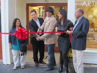 --Continue Reading--On October 1st, we had our ribbon cutting ceremony with Bethlehem’s mayor, John Callahan, officially welcoming Artfully Elegant to its new location on Main Street. We had a great turnout from our family, friends, and clients. Everyone was very impressed with the new space and all of our wonderful jewelry and artwork. Ranjeet’s parents and wife even took part in the ribbon cutting. Last night, we held our first client sponsored event, the October meeting of the Business and Wine Forum for Lehigh Valley executives and business owners. With wonderful food and wine tastings, the night was a big success. We sold some artwork and jewelry, plus we were able to meet lots of new people and introduce them to Artfully Elegant. We’re looking forward to our grand opening party in the beginning of November. Good food, good drink, beautiful work and wonderful people – we can’t wait! Pictured from L to R: Maina Pawar, Mayor John Callahan, Ranjeet Pawar, Neha Pawar, Raj Pawar.