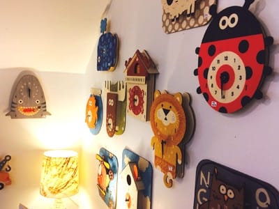 --Continue Reading--Our children’s section at Artfully Elegant has been exploding recently. The biggest bang for your buck, it seems, has been our Modern Moose three dimensional wall hangings and clocks. After 25 years as an industrial designer for a big name companies, Paul Ocepek went out on a limb producing his personal designs. He blames it partially on the purchase of a laser cutter to appease his gnawing midlife crisis. However, that impulse buy has proven to be quite profitable. Paul designs and builds his laser cut wood wall hangings and clocks in “Moosachusetts”. The mix of natural materials and themes, with bright colors, clean lines, and bold patterns make every customer smile. Who can resist a shark clock, with a fishbone for a pendulum hanging from its mouth? Or a polkadotted moose with a purple rack? They bring to mind the trophies often seen hunting family homes, but with the humor of a saturday morning cartoon. You can feel good about these products not only because they are handmade in the USA, but because they use safe materials. Each one is crafted from sustainably harvested baltic birch plywood and printed with non-toxic, water based inks. No glue or chemical coatings either. We’re in love with all of these wall pieces. Visit us to pick the right one for you!