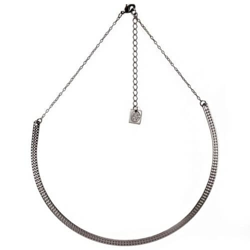The Amber Collar is handmade in Brazil. Detailed shiny 10mm wide collar that can be worn alone or add a pendant for another look! The Amber Collar is handmade by Sheila Fajl.