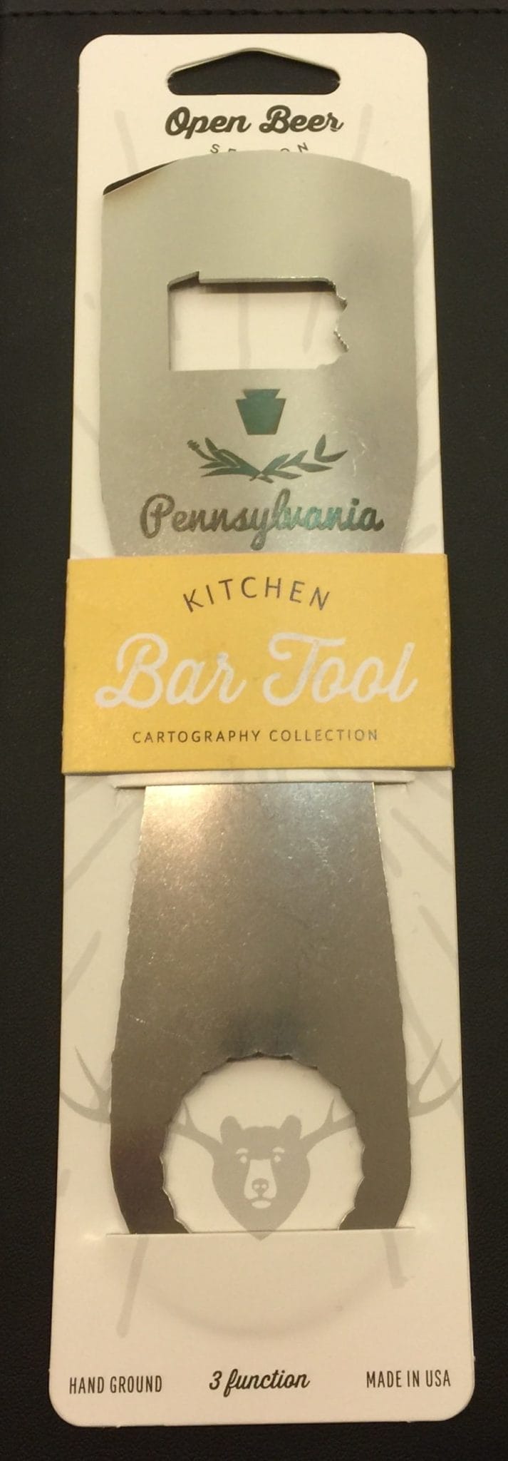 This fun opener lets you show your hometown pride! The Bartool Pennsylvania measures 7 inches long. Stainless steel, won’t bend, break or rust. Bartool Pennsylvania made in the USA by Zootility Tools!