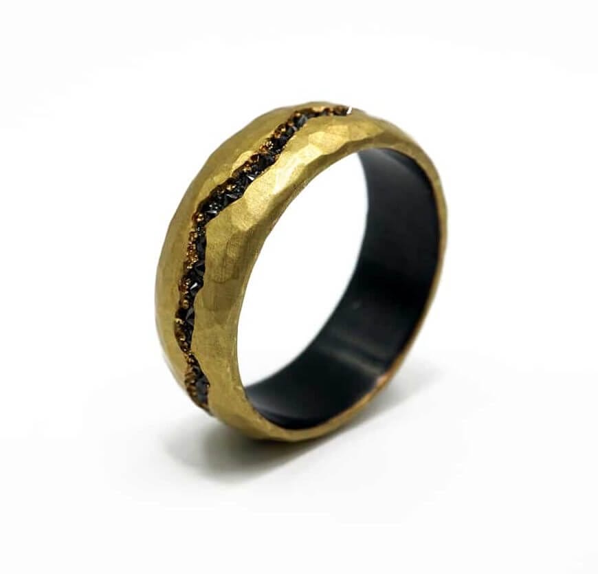Tags: Black Diamond Wedding Rings Handmade Wedding Bands Handmade Yellow Gold Rings Inverted Diamonds Men's Wedding Bands TAP By Todd Pownell