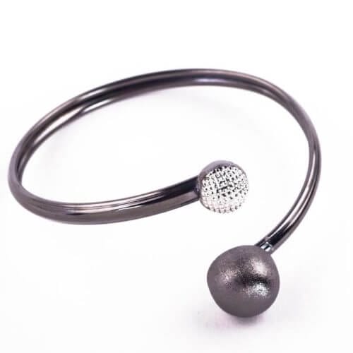 The Bosnia Bracelet is handmade in Brazil. This wrap around bracelet has a two toned finish to stack or pair with any of the Bosnia Earrings, Bosnia Ring or anything else from your collection! The Bosnia Bracelet is detailed in rhodium and gun metal by Sheila Fajl.