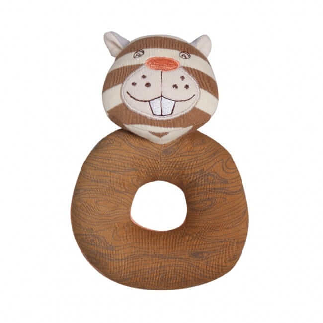 View ArtistThe Buster Beaver Teething Rattle is made of 100% organic cotton fabric. It uses hypoallergenic sustainable corn fiber filler and is sized at 4 x 6 inches. Packaging: recycled paper printed with soy ink.
