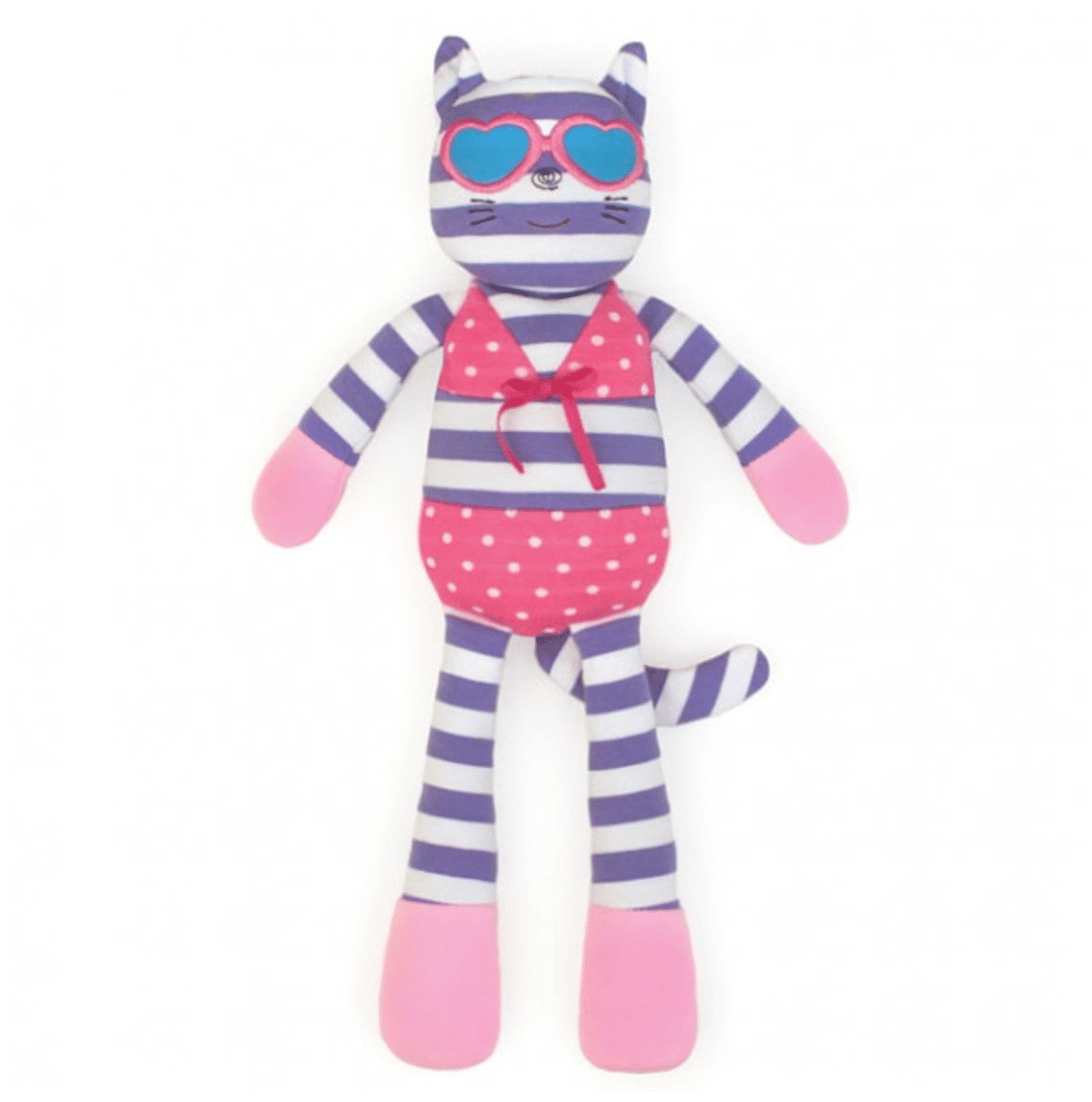 The Catnap Kitty Organic Farm Buddy is made of 100% organic cotton fabric. It uses hypoallergenic sustainable corn fiber filler and is sized at 14 inches. Packaging: recycled paper printed with soy ink.