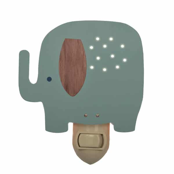 Hand painted wooden nightlight shades in fun animal shapes with walnut veneer accents. Little holes in the shade let the light shine through. On/off switch on base, frosted bulb included. Sized 4″ x 4-1/2″.