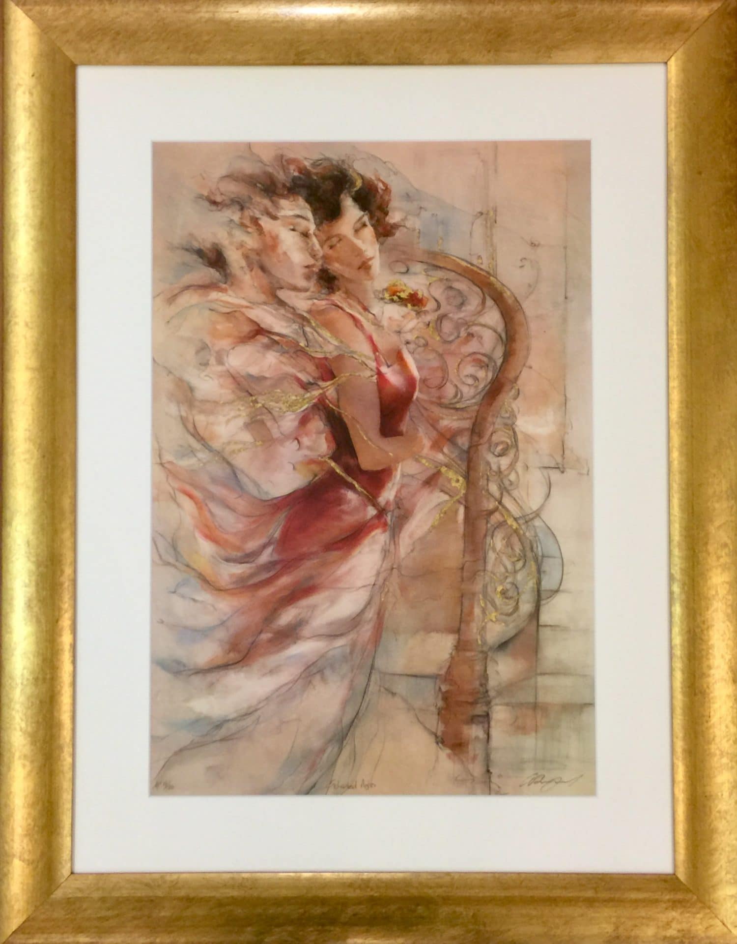 Gary Benfield’s keen eye for natural details joins with his vivid imagination in his work. His spontaneity is apparent in the dramatic pencil contours, casual brushstrokes and translucent colors of his original paintings. The forms are always classical and graceful and the compositions meticulous. The figures dissolve in the background and move across the canvas. Gary Benfield is a highly respected and highly collected artist. He is unmatched in his field for his ability to bring the feeling of love through the movement of his brushstrokes.