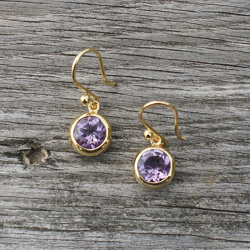 The Full Moon Gold Vermeil & Amethyst Earrings are made of 22k gold vermeil bezel set amethyst earrings. Approximately 1″ long. E119-AM