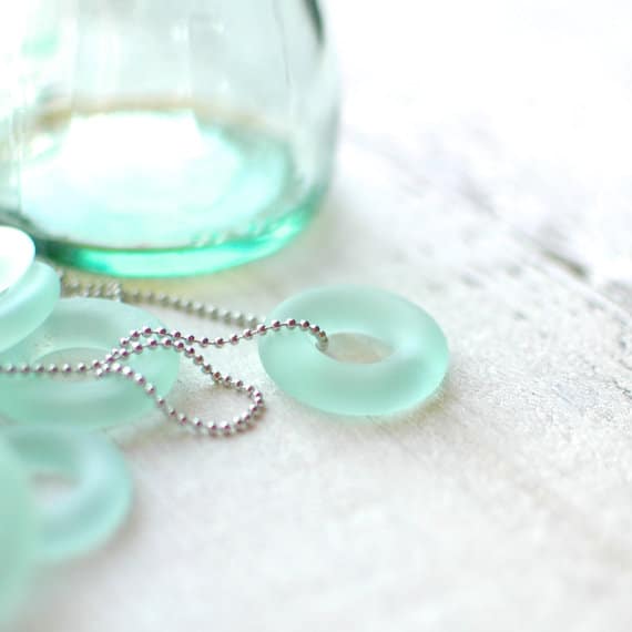 The handcrafted glass on our necklaces will look similar to the photograph but will always vary slightly in shape, thickness, size and hue. Due to the nature of our handcrafted products, no two repurposed glass pieces are alike. The glass on your necklace will be one of a kind.