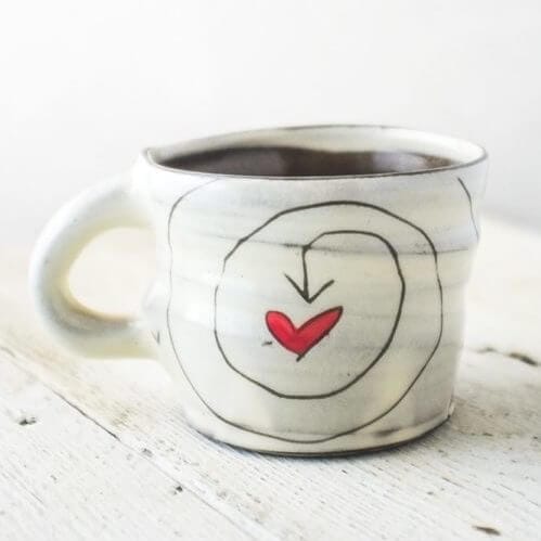 View ArtistI Choose Love Mug is a wheel thrown and slip trailed ceramic cup. It is signed on bottom by the artists. It’s microwave, dishwasher and oven safe. And it’s 4″H holds 14oz of your favorite drink. All cups are made by hand and will vary in size, shape, and placement of designs. The I Choose Love Mug is a beautiful way to start your day – “I Choose Love Mug”