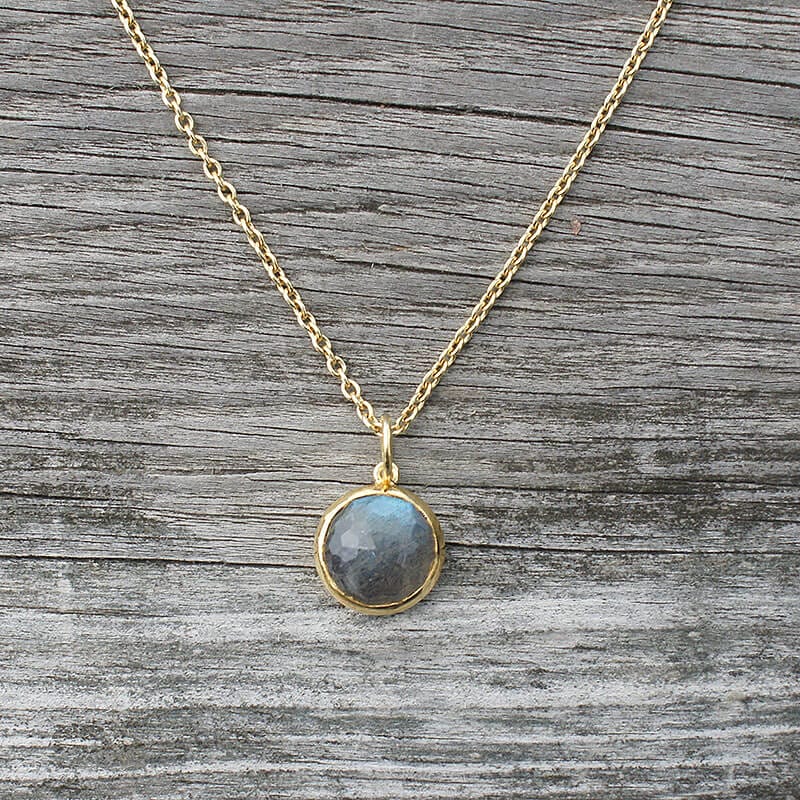The Ios Gold Vermeil & Labradorite Necklace is made of 22k gold vermeil and faceted labradorite. Chain is adjustable from 16″ – 20″. N104A-LB