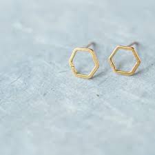 Large hex studs, approximately 1/2″ in diameter. Available in sterling silver, oxidized silver, or gold vermeil.