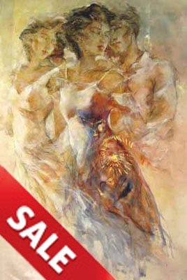 Gary Benfield’s keen eye for natural details joins with his vivid imagination in his work. His spontaneity is apparent in the dramatic pencil contours, casual brushstrokes and translucent colors of his original paintings. The forms are always classical and graceful and the compositions meticulous. The figures dissolve in the background and move across the canvas. Gary Benfield is a highly respected and highly collected artist. He is unmatched in his field for his ability to bring the feeling of love through the movement of his brushstrokes.