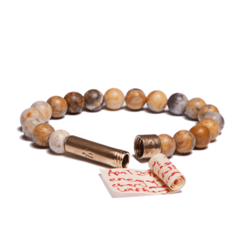 Write down your deepest wish, tuck it inside your Wishbeads bracelet, and wear it as a daily reminder to take action. Each Wishbeads bracelet features a solid brass cylinder with a screw on cap, and comes with 5 Wishpapers and one toothpick to assist in rolling.