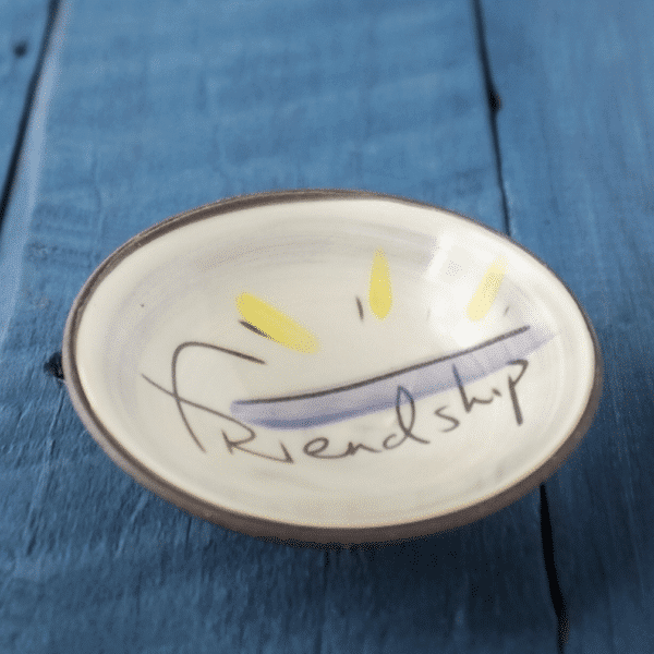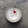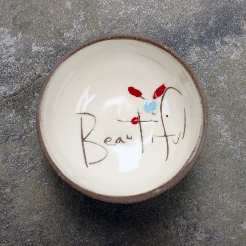 View ArtistWheel thrown and slip trailed mini bowls, signed on bottom. Food and dishwasher safe. Approximately 3″ in diameter and 1.5″ high. These are perfect for spare change or to you hold your jewelry. All mini bowls are made by hand and will vary in size, shape, and placement of designs.