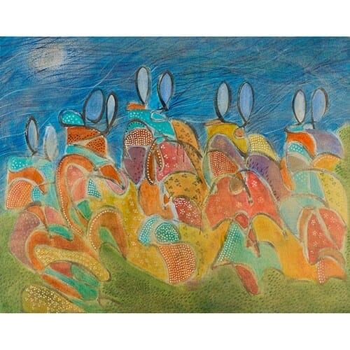View ArtistThe Moonlit Night IV by Salma Arastu is a mixed media painting on canvas with acrylic. Salma uses numerous techniques to create her artwork. Her goal is often to provide a variety of textures and depth to each and every painting. This artwork is sized at 38″ x 48″. The Moonlit Night IV by Salma Arastu.