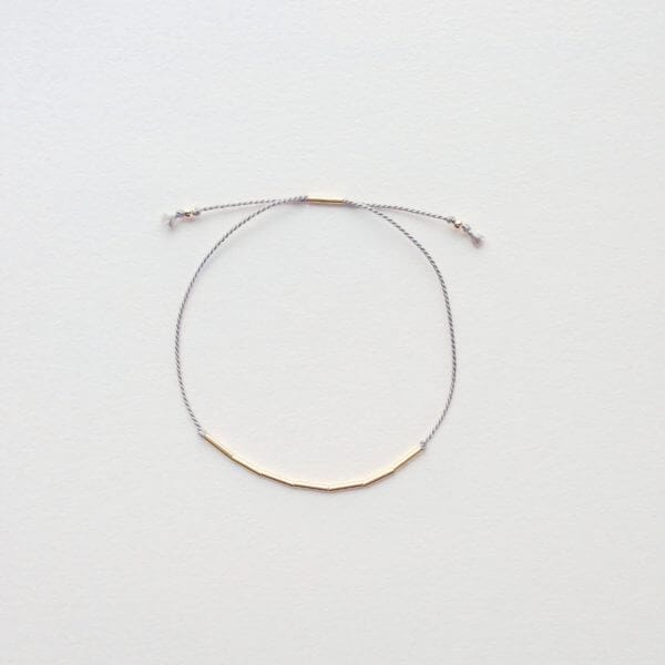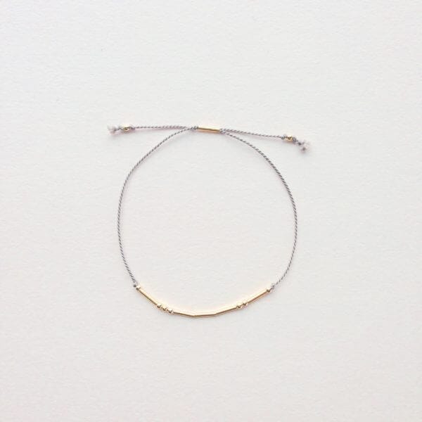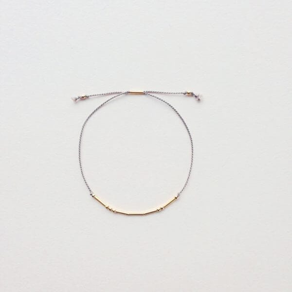 The Morse Coded Sister Silk Bracelet is beautifully modern and feminine. It’s sleek and slender 14k gold fill dots and dashes on an adjustable 8″ gray silk cord makes a perfect gift for you and yours. It says SISTER in Morse Code. Coatt Jewelry Words Collection.