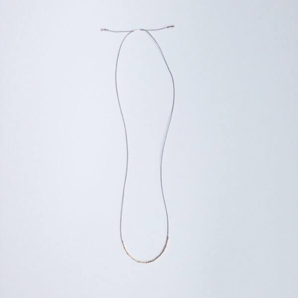 The Morse Coded Sister Silk Necklace is beautifully modern and feminine. It’s sleek and slender 14k gold fill dots and dashes on an adjustable 24″ gray silk cord makes a perfect gift for you and yours. It says SISTER in Morse Code. Coatt Jewelry Words Collection.