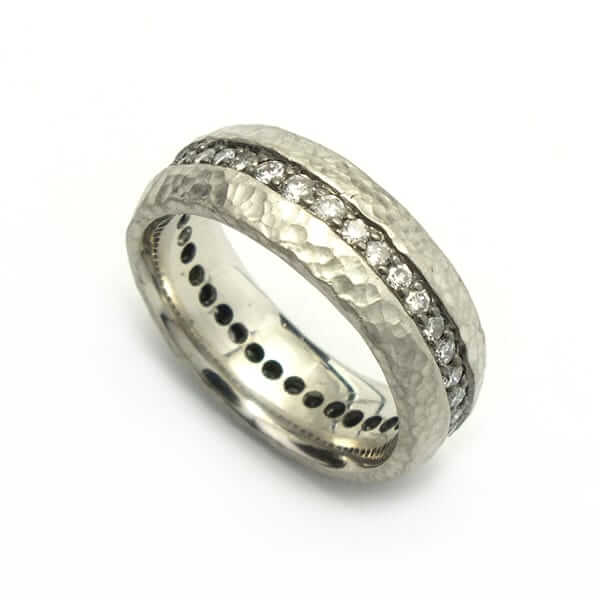 Todd Pownell engagement rings and wedding bands are made to exude strength and beauty all at the same time. To see more pieces like the Platinum Hammered Eternity Band, visit our Handmade Wedding Bands collection page.