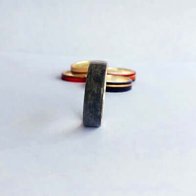 This is a handmade Skateboard Silver Ring 25 is made from used and broken skateboards. As a skateboard, it contains 7 colorful layers of Canadian maple, really hard wood. Each ring has a sterling silver liner. Every ring is 100% waterproof, so it never lost his shine, in direct contact with water and dirt too.