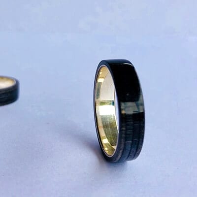These handmade Skateboard Silver Wedding Bands (sold as a pair) are made from used and broken skateboards. As a skateboard, it contains 7 colorful layers of Canadian maple, really hard wood. Each ring has a sterling silver liner. Every ring is 100% waterproof, so it never lost his shine, in direct contact with water and dirt too.