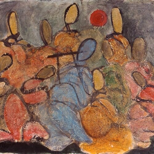 View ArtistThe Blue God I by Salma Arastu is a mixed media painting on paper with acrylic. Salma uses numerous techniques to create her artwork. Her goal is often to provide a variety of textures and depth to each and every painting. This artwork is sized at 38″ x 48″. The Blue God I by Salma Arastu.