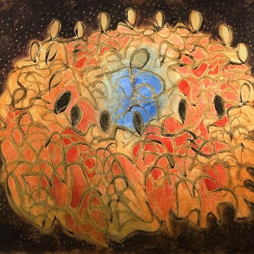 View ArtistThe Blue God V by Salma Arastu is a mixed media painting on board with acrylic. Salma uses numerous techniques to create her artwork. Her goal is often to provide a variety of textures and depth to each and every painting. This artwork is sized at 48″ x 48″. The Blue God V by Salma Arastu.