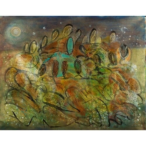 View ArtistThe Blue God VI by Salma Arastu is a mixed media painting on canvas with acrylic. Salma uses numerous techniques to create her artwork. Her goal is often to provide a variety of textures and depth to each and every painting. This artwork is sized at 38″ x 48″. The Blue God VI by Salma Arastu.
