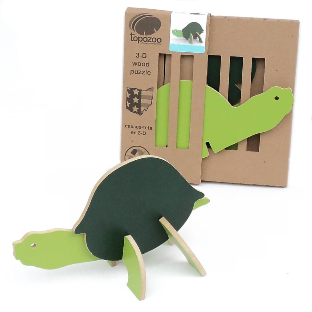 The Turtle is over 9″ long and can be mixed with all other Topozoo animals. Each animal is made in the USA from recycled materials, formaldehyde-free wood and water-based stains. Packaged in an attractive recycled cage box.