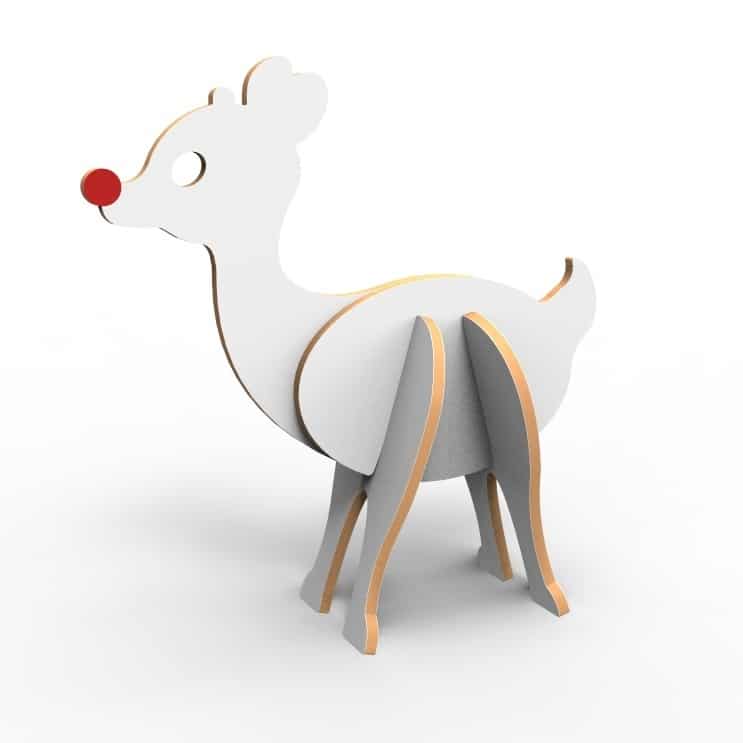 This designer reindeer works equally well in the toy box or as a shelf decoration.