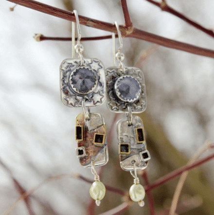 --Continue Reading--Angela Duffin is a Philadelphia jewelry maker with a background in textile design (B.S. from Philadelphia College of Textiles and Sciences). Duffin creates unique hand-fabricated sterling silver and mixed-metal jewelry with semi precious stones.
